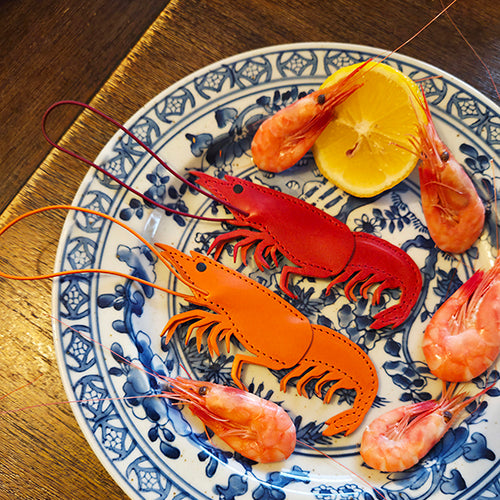 The Shrimp shape leather charm was inspired by my cooking experience with a box of very delicious Argentine Red Shrimp.